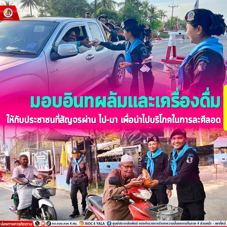 ทั้งนี้ หน่วยเฉพาะกิจกรมทหารพรานที่ 44 ได้ปรับแผนการตั้งด่านตรวจให้เป็นจุดอำนวยความสะดวกให้พี่น้องประชาชนในห้วงเดือนรอมฎอน เพื่อให้สอดคล้องกับการปฏิบัติศาสนกิจของพี่น้องชาวไทยมุสลิมในพื้นที่จังหวัดชายแดนภาคใต้ ตามนโยบายของ แม่ทัพภาคที่ 4 / ผู้อำนวยการรักษาความมั่นคงภายในภาค 4 ซึ่งการมอบอินทผลัมในครั้งนี้ นอกจากจะเป็นการสนับสนุนการปฏิบัติศาสนกิจอันดีงามของพี่น้องไทยมุสลิมแล้ว ยังเป็นการสร้างความสัมพันธ์ที่ดีระหว่างเจ้าหน้าที่รัฐ กับประชาชนในพื้นที่ อีกทั้งยังสร้างรอยยิ้มและความประทับใจให้กับประชาชนที่สัญจรไป-มาในพื้นที่เป็นอย่างมาก
