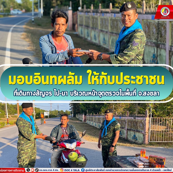 วันที่ 16 มีนาคม 2567 หน่วยเฉพาะกิจสงขลา 40 นำกำลังพลมอบอินทผลัมพร้อมน้ำดื่มให้กับประชาชนที่เดินทางสัญจรไป-มา ณ บริเวณหน้าจุดตรวจต่าง ๆ ในพื้นที่รับผิดชอบ ประกอบด้วย จุดตรวจตลาดสะบ้าย้อย อำเภอสะบ้าย้อย จังหวัดสงขลา, จุดตรวจหน้าฐาน กองร้อยทหารราบที่ 2534 หมู่ที่ 7 ตำบลปากบาง อำเภอเทพา จังหวัดสงขลา และจุดตรวจหน้าฐานหมวดปืนเล็กที่ 3 กองร้อยทหารราบที่ 2534 หมู่ที่ 8 บ้านหนองสาหร่าย ตำบลท่าม่วง อำเภอเทพา จังหวัดสงขลา เพื่อให้พี่น้องประชาชนได้ใช้บริโภคในการละศีลอด (เปิดปอซอ) สนับสนุนการปฏิบัติศาสนกิจอันดีงามของพี่น้องไทยมุสลิมในห้วงเดือนรอมฎอน ประจำปีฮิจเราะห์ศักราช 1445 โดยชาวไทยมุสลิมนิยมรับประทานอินทผลัมในช่วงเดือนถือศีลอด หรือเดือนรอมฎอน เนื่องจากในคัมภีร์อัลกุรอานได้บัญญัติไว้ว่าสามารถละศีลอดด้วยการกินอินทผลัมแทนการดื่มน้ำได้เพื่อช่วยลดอาการอ่อนเพลียในช่วงอดอาหาร