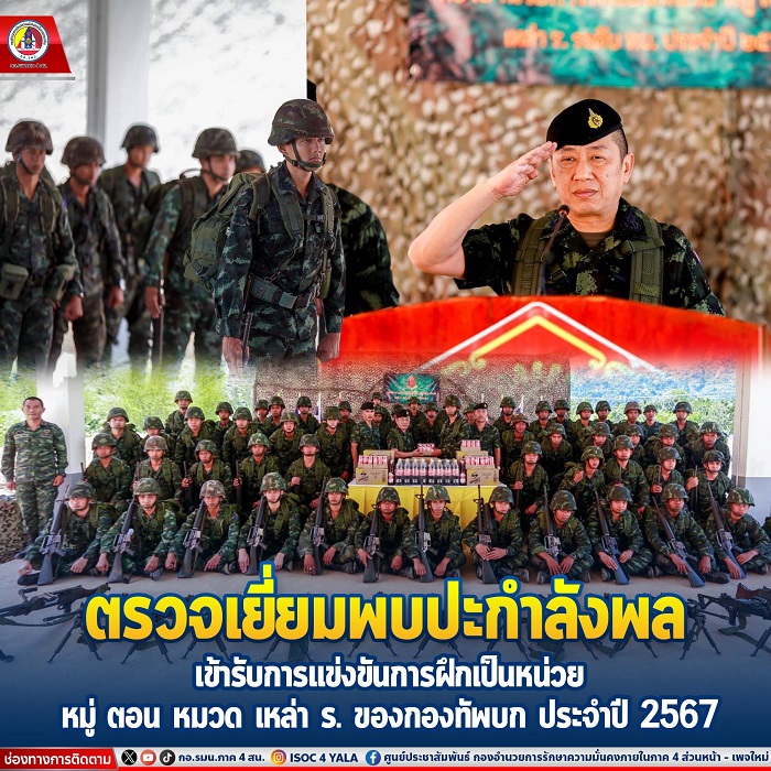 วันที่ 16 มีนาคม 2567 พันเอก สิทธิศักดิ์ เจนบรรจง ผู้บังคับการกรมทหารราบที่ 152 ลงพื้นที่ไปยังกองพันทหารราบที่ 1 กรมทหารราบที่ 152 ตำบลถ้ำทะลุ อำเภอบันนังสตา จังหวัดยะลา เพื่อตรวจเยี่ยม พบปะกำลังพลเข้ารับการแข่งขันการฝึกเป็นหน่วย หมู่ ตอน หมวด เหล่าทหารราบ ของกองทัพบก ประจำปี 2567 พร้อมรับฟังปัญหาข้อขัดข้อง และพูดคุยสร้างขวัญกำลังใจในการปฏิบัติหน้าที่ของกำลังพล รวมทั้งได้เน้นย้ำให้ทำการฝึกอย่างจริงจัง มีความสามัคคี เสียสละ และอดทน เพื่อเป็นพลังในการสร้างเกียรติประวัติให้กับหน่วย ตามที่ผู้บังคับบัญชาได้มอบนโยบายไว้ นอกจากนี้ ผู้บังคับการกรมทหารราบที่ 152 ยังได้มอบเครื่องดื่ม เพื่อเป็นขวัญและกำลังใจต่อไป