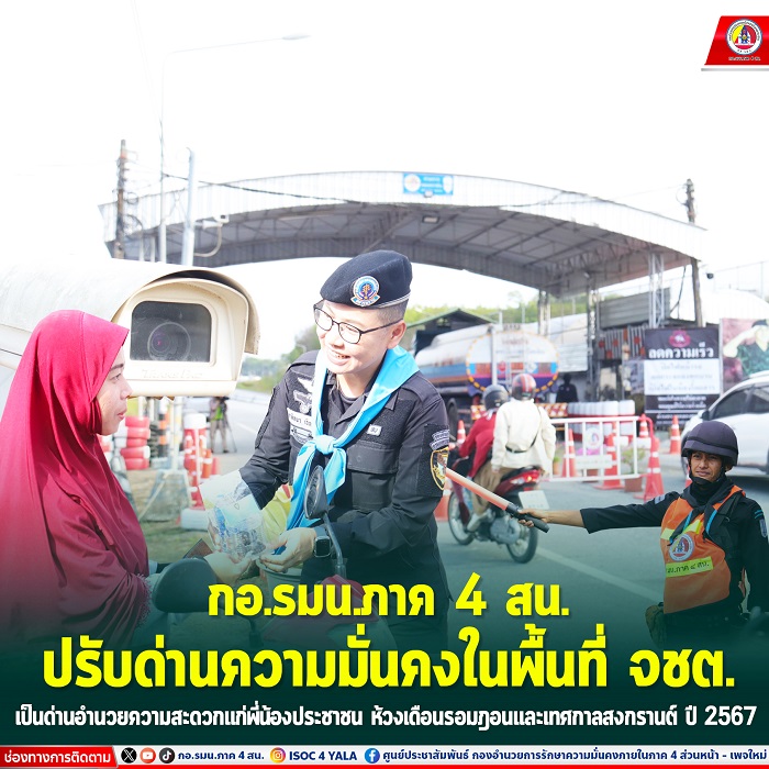 โดยด่านตรวจในพื้นที่จังหวัดชายแดนภาคใต้ ได้ปรับเปลี่ยนจากด่านความมั่นคง เป็นด่านอำนวยความสะดวกในการเดินทางของพี่น้องประชาชนทั้งในและนอกพื้นที่จังหวัดชายแดนภาคใต้ เพื่อให้เกิดความสะดวกสบาย เกิดความปลอดภัย แก่พี่น้องประชาชนทุกคน ทุกเทศกาล ด้วยการตกแต่งต้นไม้ประดับสร้างสีสัน ตลอดจนเจ้าหน้าที่ประจำด่านตรวจโดยเฉพาะช่วงนี้พี่น้องชาวไทยมุสลิมอยู่ในห้วงของการปฏิบัติศาสนกิจ ตามหลักศาสนาอิสลาม ที่นับว่าเป็นเดือนสำคัญที่สุดเดือนหนึ่ง ที่พี่น้องชาวมุสลิมจะบำเพ็ญกุศลถือศีลอด ทำความดี มีจิตเมตตา ตลอดห้วงเดือนรอมฎอน ฮ.ศ.1445 ขณะเดียวกันรอมฎอนปีนี้ ตรงกับเทศกาลสงกรานต์ของพี่น้องชาวไทยพุทธในเดือนเมษายน ซึ่งเจ้าหน้าที่ประจำด่านจึงได้มีการแจกอินทผลัมแก่พี่น้องไทยมุสลิมในช่วงเดือนถือศีลอดตลอดจนแจกจ่ายเครื่องอุปโภค-บริโภค อาทิ น้ำดื่มน้ำสะอาด ชาเย็น ขนมปัง แทนน้ำใจ มอบความสุข สร้างรอยยิ้มแก่ประชาชนผูัใช้รถใช้ถนนทุกเทศกาล เพื่อลดความตึงเครียดแก่ประชาชนขณะสัญจรไปมา สร้างขวัญกำลังใจที่ดีแก่กำลังพล