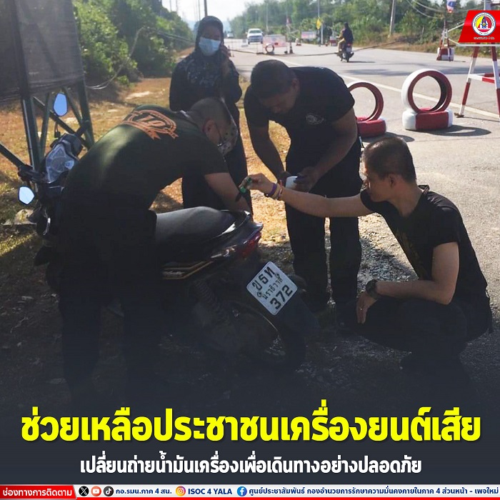 ทางเจ้าหน้าที่ได้เข้าช่วยเหลืออย่างทันท่วงที เพื่อความปลอดภัยในชีวิตและทรัพย์สินของประชาชน ซึ่งประชาชนรู้สึกดีใจ อุ่นใจที่เจ้าหน้าที่ทหารเข้ามาช่วยเหลือตรวจเช็คน้ำมันเครื่องหมด จึงได้ไปซื้อมาเปลี่ยนใส่ให้ใหม่ โดยประชาชนได้กล่าวขอบคุณเจ้าหน้าที่ และสามารถเดินทางต่อไปได้อย่างปลอดภัย “ทำความดีได้ทุกโอกาส” ร่วมกันสร้างสันติสุขในพื้นที่