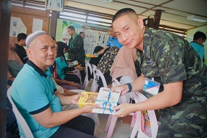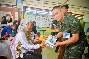 เมื่อวันที่ 19 มีนาคม 2567 เวลา 1100 น. ศาลาอเนกประสงค์ บ้านเพ็งยา ตำบลสะบ้าย้อย อำเภอสะบ้าย้อย จังหวัดสงขลา พันโท เก่งพงศ์ แก้วรากมุก รองหัวหน้าคณะทำงานที่ 4 เป็นผู้แทน พลตรี เฉลิมพร ขำเขียว ผู้บัญชาการกองพลทหารราบที่ 15 / ผู้อำนวยการศูนย์ประสานงานโครงการอันเนื่องมาจากพระราชดำริ เดินทางลงพื้นที่ เพื่อพบปะ เยี่ยมเยียน สานสัมพันธ์ พี่น้องสมาชิกองค์กรภาคประชาชนเพื่อสันติ และเศรษฐกิจพอเพียง (กลุ่มเสื้อเขียว) บ้านเพ็งยา ตำบลสะบ้าย้อย อำเภอสะบ้าย้อย จังหวัดสงขลา พร้อมทั้งรับทราบปัญหา อุปสรรค ในการดำเนินงาน บูรณาการปฏิบัติร่วมกัน รวมถึงแนวทางการปฏิบัติ ตลอดจนเพื่อส่งเสริมการดำเนินงานตามแนวทางศาสตร์พระราชา ของพระบาทสมเด็จพระบรมชนกาธิเบศร มหาภูมิพลอดุลยเดชมหาราช บรมนาถบพิตร (ในหลวงรัชกาลที่ 9) เพื่อสืบสาน รักษา ต่อยอด งานโครงการอันเนื่องมาจากพระราชดำริในพื้นที่จังหวัดชายแดนภาคใต้ ในการนี้ ได้มอบ คู่มือการขับเคลื่อนศูนย์การเรียนรู้ตามหลักปรัชญาของเศรษฐกิจพอเพียง และอินทผลัม ใช้ในการละศีลอด (เปิดบวช) ให้แก่พี่น้องสมาชิกไทยมุสลิม เนื่องในโอกาสเข้าสู่เดือนรอมฎอน ประจำปีฮิจเราะห์ศักราช 1445 และเพื่อเป็นการส่งเสริมบำรุงศาสนาตามหลักปฏิบัติของศาสนาอิสลาม ส่งเสริมความรัก ความสามัคคี สมานฉันท์ ร่วมกันสร้างสันติสุข ภายใต้สังคมแบบพหุวัฒนธรรมของจังหวัดชายแดนภาคใต้ต่อไป