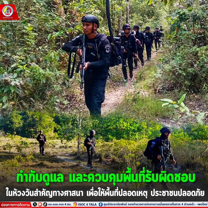 หน่วยเฉพาะกิจกรมทหารพรานที่ 44 จัดกำลังพลชุดปฏิบัติการจรยุทธ์ ทำการลาดตระเวนพิสูจน์ทราบ และซุ่มเฝ้าตรวจ ตามแผนเชิงรุกในรูปแบบการลาดตระเวนเพื่อควบคุมพื้นที่ในเขตพื้นที่รับผิดชอบของหน่วยประกอบไปด้วย พื้นที่ป่าภูเขา, พื้นที่เขตชุมชนไทยพุทธ, พื้นที่บริเวณแนวชายป่าท้ายหมู่บ้าน Support site รวมไปถึงพื้นที่ จุดเสี่ยง / จุดล่อแหลมต่าง ๆ เพื่อเป็นการจำกัดเสรีความพยายามในการปฏิบัติของฝ่ายตรงข้ามที่อาจจะลักลอบเข้ามาก่อเหตุสร้างสถานการณ์ในห้วงวันสำคัญทางศาสนา