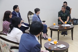 ด้าน พลตรี ไพศาล หนูสังข์ รองแม่ทัพภาคที่ 4/รองผู้อำนวยการรักษาความมั่นคงภายในภาค 4 ส่วนหน้า กล่าวว่า ทางกองอำนวยการรักษาความมั่นคงภายในภาค 4 ส่วนหน้า ยินดีต้อนรับทางคณะเอกอัครราชทูตออสเตรเลียประจำประเทศไทย ที่มาเยือนจังหวัดชายแดนภาคใต้ จะได้ประชาสัมพันธ์ถึงสถานการณ์ในพื้นที่ ในส่วนภารกิจการรักษาความปลอดภัยแก่พี่น้องประชาชนนั้น มีทั้งฝ่ายทหาร ตำรวจและพลเรือน ปฏิบัติภารกิจควบคู่กับงานด้านความมั่นคงและด้านการพัฒนา ภายใต้หลักปรัชญาของเศรษฐกิจพอเพียงของในหลวงราชการที่ 9 โดยยึดหลักการทำงานร่วมกับทุกภาคส่วน รวมไปถึงผู้นำศาสนา ผู้นำท้องถิ่น ผู้นำท้องที่ ในการร่วมกันทำหมู่บ้านให้เข้มแข็งภายใต้ฮูกุมปากัต (ธรรมนูญหมู่บ้าน 9 ดี) สำหรับในส่วนของสถานการณ์ความรุนแรงในพื้นที่นั้นลดลงอย่างต่อเนื่อง ด้วยสันติวิธี และสร้างการรับรู้ สร้างการพัฒนามาแก้ไขปัญหากับกลุ่มผู้เห็นต่าง และเจ้าหน้าที่เองจะไม่สร้างเขื่อนไขในพื้นที่ รวมทั้งปฏิบัติหน้าที่ด้วยความเข้าใจถึงสังคมพหุวัฒนธรรมในพื้นที่ รวมถึงทั้ง 2 ประเทศเรามีความสัมพันธ์ที่ดีมาอย่างยาวนาน ทางเราพร้อมที่จะจับมือและสร้างความสัมพันธ์ที่ดีอย่างต่อเนื่องต่อไป
