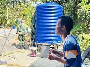 ทั้งนี้ กองทัพบกและหน่วยงานภาคี มีความห่วงใยต่อความเดือดร้อนของพี่น้องประชาชน และถือเป็นเรื่องสำคัญเร่งด่วน ที่ต้องร่วมกันแก้ไขปัญหา ภายใต้ “โครงการ ราษฎร์ รัฐ ร่วมใจ ช่วยภัยแล้ง” เพื่อดำเนินการแจกจ่ายน้ำอุปโภค บริโภค ให้กับประชาชนที่ประสบภัยในห้วงหน้าแล้งนี้
