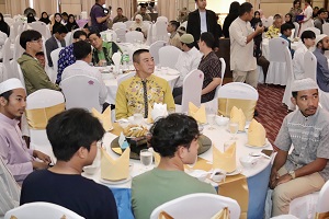 วันนี้ (23 มีนาคม 2567) เวลา 17.50 น. ที่ ห้องไซตูน โรงแรมญันนะตีย์ หาดใหญ่ ตำบลหาดใหญ่ อำเภอหาดใหญ่ จังหวัดสงขลา พลโท ศานติ ศกุนตนาค แม่ทัพภาคที่ 4 / ผู้อำนวยการรักษาความมั่นคงภายในภาค 4 ร่วมละศีลอด และพบปะ ผู้นำศาสนาและเยาวชนจากสถาบันพัฒนาคุณภาพชีวิตเยาวชน ในกิจกรรมรอมฎอน เยาวชนสัมพันธ์ ประจำปี 2567 งานเลี้ยงละศีลอดรอมฎอน ฮิจเราะห์ 1445 โดยมี พลตำรวจโท ปิยะวัฒน์ เฉลิมศรี ผู้บัญชาการตำรวจภูธรภาค 9, Mr. Ahmad Fahmi Ahmad Sarkawi กงสุลใหญ่มาเลเซีย ณ จังหวัดสงขลา, นายรอมฎอน หะยีอาแว ผู้ช่วยเลขาธิการ ศูนย์อำนวยการบริหารจังหวัดชายแดนภาคใต้, นายมาหะมะพีสกรี วาแม รองผู้ว่าราชการจังหวัดสงขลา, ผู้บริหารสถาบันพัฒนาคุณภาพชีวิตเยาวชน, นายกสมาคม ผู้นำศาสนาอิสลามภาคใต้ และเยาวชนจากสถาบันพัฒนาคุณภาพชีวิตเยาวชน เข้าร่วมกิจกรรม
