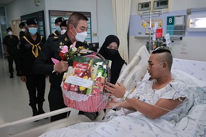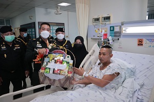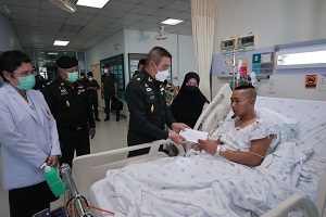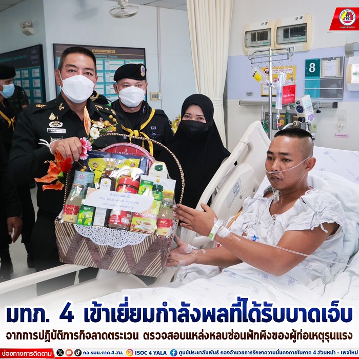 วันนี้ 27 มีนาคม 2567 พลโท ศานติ ศกุนตนาค แม่ทัพภาคที่ 4/ ผู้อำนวยการรักษาความมั่นคงภายในภาค 4 เข้าเยี่ยมให้กำลังใจกำลังพล อาสาสมัครทหารพราน เจ๊ะมาฮาดี เจะแล เจ้าหน้าที่หน่วยเฉพาะกิจกรมทหารพรานที่ 45 ที่ได้รับบาดเจ็บจากการเหยียบกับเหตุระเบิด ระหว่างปฏิบัติภารกิจลาดตระเวนและตรวจสอบแหล่งพักพิงผู้ก่อเหตุรุนแรงในพื้นที่บ้านโต๊ะอีแต ตำบลบองอ อำเภอระแงะ จังหวัดนราธิวาส เมื่อวันที่ 26 มีนาคม 2567 ที่ผ่านมา ณ โรงพยาบาลสงขลานครินทร์ ที่ได้รับบาดเจ็บเป็นแผลฉกรรจ์บริเวณข้อเท้าขวา และกระดูกแตกละเอียด ซึ่งขณะนี้อาการปลอดภัยแล้ว