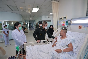 โดย พลโท ศานติ ศกุนตนาค แม่ทัพภาคที่ 4/ ผู้อำนวยการรักษาความมั่นคงภายในภาค 4 ได้พูดคุยสอบถามอาการบาดเจ็บ และเหตุการณ์ที่เกิดขึ้นด้วยความห่วงใยเจ้าหน้าที่ผู้ปฏิบัติงาน พร้อมให้กำลังใจ อาสาสมัครทหารพราน เจ๊ะมาฮาดี เจะแล และครอบครัว ชื่นชมการทำงานที่เสียสละ ทั้งนี้ขอให้ปฏิบัติหน้าที่อย่างระมัดระวัง ซึ่งหลังจากนี้ ทางกองทัพภาคที่ 4 ดูแลเรื่องสิทธิและสวัสดิการอย่างดีที่สุด รวมทั้งกำชับให้รายงานความคืบหน้าอาการของกำลังพลอย่างต่อเนื่อง
