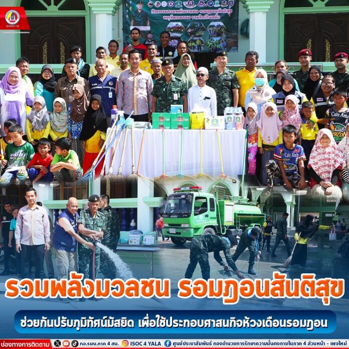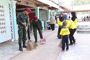 พันเอก เปรียว ติณสูลานนท์ รองผู้บังคับหน่วยเฉพาะกิจสงขลา ได้กล่าวขอบคุณทุกคนที่มาร่วมกันทำความดี พัฒนามัสยิดให้มีความสะอาดสวยงาม เพื่อจะใช้ประโยชน์สถานที่แห่งนี้ ในห้วงเดือนรอมฎอนอันประเสริฐ ซึ่งหน่วยเฉพาะกิจสงขลาได้ปฏิบัติตามนโยบายและเจตนารมย์ ของผู้อำนวยการรักษาความมั่นคงภายในภาค 4 นั่นคือ การทำพื้นที่ให้ปลอดเหตุ ประชาชนปลอดภัย และการปรับภูมิทัศน์ด่านตรวจ จุดตรวจต่างๆ ให้สามารถเอื้ออำนวยความสะดวกให้กับพี่น้องประชาชนในการใช้เส้นทางสัญจรไปมา รวมถึงการสนับสนุนกิจกรรมต่างๆ เพื่อให้พี่น้องชาวไทยมุสลิมได้ประกอบศาสนกิจอย่างเต็มที่ และเพื่อสร้างความสุขให้กับชุมชน ปลูกฝังความรักความสามัคคีให้กับคนในพื้นที่ นับเป็นส่วนสำคัญที่จะนำไปสู่การแก้ไขปัญหาในพื้นที่จังหวัดชายแดนภาคใต้ต่อไป