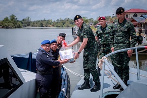 พร้อมกันนี้ แม่ทัพภาคที่ 4/ ผู้อำนวยการรักษาความมั่นคงภายในภาค 4 ได้มอบสิ่งของอุปโภคและบริโภคให้กำลังใจแก่เจ้าหน้าที่ ให้มีความมุ่งมั่นปฏิบัติงาน เสียสละเพื่อพี่น้องประชาชน ประเทศชาติ ดูแลพื้นที่เเนวชายแดน รวมถึงยังได้มอบเครื่องอุปโภค-บริโภค และอินทผลัมให้กับทหารมาเลเซีย ในฐานะที่ปฏิบัติหน้าที่ดูแลชายแดนไทย-มาเลเซียร่วมกันมาโดยตลอดเป็นการกระชับความสัมพันธ์ความร่วมมือในการรักษาดูแลพื้นที่ชายแดนร่วมกัน