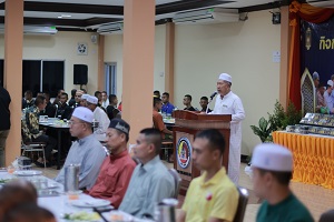 แม่ทัพภาคที่ 4 ได้กล่าวพบปะให้กำลังใจและอวยพรแก่ผู้เข้าร่วมกิจกรรมฯ ว่า “ สำหรับการจัดกิจกรรมละศีลอดเดือนรอมฎอน ฮิจเราะห์ศักราช 1445 ประจำปี 2567 ให้กับกำลังพลในวันนี้ ซึ่งถือว่าเป็นเดือนแห่งประเสริฐยิ่งของพี่น้องมุสลิมที่จะประกอบศาสนกิจอย่างเต็มที่ให้ได้บุญกุศล ฝึกความอดทน อดกลั้น ทั้งทางร่างกายและจิตใจ เป็นการขัดเกลาจิตใจให้บริสุทธิ์อย่างแท้จริง ทางกองอำนวยการรักษาความมั่นคงภายในภาค 4 ส่วนหน้า ในฐานะผู้อำนวยการรักษาความมั่นคงภายในภาค 4 เล็งเห็นถึงความสำคัญในการประกอบศาสนกิจในห้วงเดือนรอมฎอนของกำลังพลที่นับถือศาสนาอิสลามที่ปฏิบัติหน้าที่ในกองอำนวยการรักษาความมั่นคงภายในภาค 4 ส่วนหน้า และหน่วยที่มีที่ตั้งหน่วยภายในค่ายสิรินธร ไม่ว่าจะเป็นศาสนาใดพร้อมที่จะสนับสนุนอย่างเต็มที่ให้การประกอบศาสนกิจบรรลุผลให้สมบูรณ์ที่สุด เพราะมีกำลังพลหลายท่านที่มีโอกาสได้เกิดประกอบภารกิจยังบ้านของตนเพราะยังคงต้องปฏิบัติภารกิจ ในการดูแลรักษาความปลอดภัยในชีวิตและทรัพย์สินของประชาชน จึงได้จัดกิจกรรมการละศีลอดครั้งนี้ เพื่อเป็นการส่งเสริมสนับสนุนการประกอบศาสนกิจของกำลังพลที่ ที่ปฎิบัติหน้าที่อยู่ในกองอำนวยการรักษาความมั่นคงภายในภาค 4 ส่วนหน้า และในค่ายสิรินธร ซึ่งได้ให้ความสำคัญกับทุกเทศกาลของทุกศาสนาของกำลังพล ซึ่งถือว่ากำลังพลทุกคนเป็นบุคคลที่มีเสียสละมาทำหน้าที่เพื่อประชาชนในการดูแลรักษาความสงบเรียบร้อย แต่กำลังพลยังคงสามารถปฏิบัติศาสนกิจอย่างครบถ้วน ณ ที่ตั้งหน่วย ทั้งนี้ขอให้กำลังพลได้ปฏิบัติศาสนกิจในเดือนรอมฎอนอย่างเต็มที่และได้รับผลบุญกุศล ตามที่มุ่งหวังไว้ทุกประการ