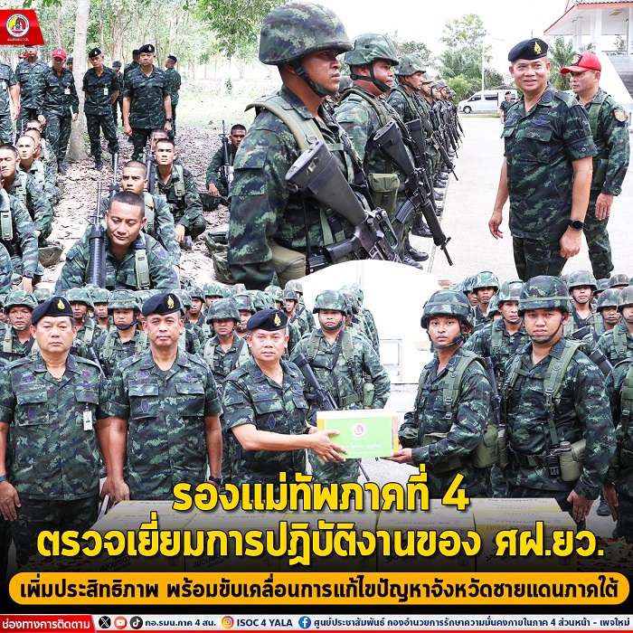 จากนั้น พลตรี ไพศาล หนูสังข์ รองแม่ทัพภาคที่ 4/ รองผู้อำนวยการรักษาความมั่นคงภายในภาค 4 ส่วนหน้า ได้เยี่ยมชมการฝึกที่ สนามฝึกสถานีการติดตั้งเครื่องเตือนภัยแสวงเครื่อง พร้อมพบปะมอบนโยบายและข้อสั่งการของผู้อำนวยการรักษาความมั่นคงภายในภาค 4 ให้กำลังพลปฏิบัติงานด้วยความไม่ประมาท ทำพื้นที่ให้ปลอดเหตุ ประชาชนปลอดภัย และมอบสิ่งของอุปโภคบริโภค เพื่อเป็นขวัญกำลังใจให้กับกำลังพล และเดินทางไปตรวจเยี่ยมการปฏิบัติงาน ณ ด่านตรวจโต้นนท์