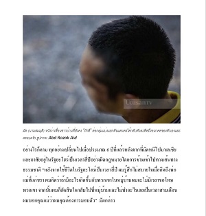 ติดตามได้จากรายงานพิเศษชุดนี้: ค้นหาสันติภาพในพื้นที่จังหวัดชายแดนภาคใต้ของไทย กับนักข่าว AFIQ MOHD SHAH : ช่างภาพ ABDUL RAZAK AID และช่างวิดีโอ WAN AIZZAT JAILANI ล้วงลึกถึงเรื่องราวของอดีตสมาชิกของกลุ่มแบ่งแยกดินแดนที่ “กลับตัว” สู่เส้นทางที่ถูกต้อง