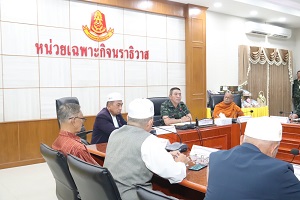 วันนี้ (30 มีนาคม 2567) เวลา 10.30 น. ที่ห้องประชุมหน่วยเฉพาะกิจนราธิวาส ค่ายกัลยาณิวัฒนา อำเภอเมือง จังหวัดนราธิวาส พลโท ศานติ ศกุนตนาค แม่ทัพภาคที่ 4/ผู้อำนวยการรักษาความมั่นคงภายในภาค 4 เป็นประธานการประชุมหารือแนวทางการปฏิบัติงานห้วง 10 วันสุดท้ายของเดือนรอมฎอน ประจำปี 2567 เพื่อร่วมกันทำให้เดือนรอมฎอนแห่งสันติสุขในปีนี้ เป็นเดือนที่สงบและปลอดภัย ประชาชนได้ปฏิบัติศาสนกิจอย่างเต็มที่ ก่อนมอบอินทผลัมแก่ผู้นำศาสนา โดยมี พลโท ปราโมทย์ พรหมอินทร์ แม่ทัพน้อยที่ 4/รองผู้อำนวยการรักษาความมั่นคงภายในภาค 4 ส่วนหน้า , พลตรี เฉลิมพร ขำเขียว ผู้บัญชาการกองพลทหารราบที่ 15/ผู้บังคับหน่วยเฉพาะกิจนราธิวาส , ผู้นำศาสนา , หน่วยเฉพาะกิจในพื้นที่จังหวัดนราธิวาส , ส่วนราชการที่เกี่ยวข้อง ตลอดจนภาคประชาชนในพื้นที่ ร่วมประชุม
