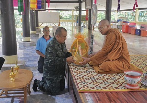 เมื่อวันที่ 30 มีนาคม 2567 เวลา 0900 น. ที่ วัดโต๊ะโม๊ะ ตำบลภูเขาทอง อำเภอสุคิริน จังหวัดนราธิวาส พันเอก กําธร ศรีเกตุ ผู้บังคับการกรมทหารราบที่ 151 / หัวหน้าคณะทำงานฯที่ 3 เป็นผู้แทน พลตรี เฉลิมพร ขำเขียว ผู้บัญชาการกองพลทหารราบที่ 15 / ผู้อำนวยการศูนย์ประสานงานโครงการอันเนื่องมาจากพระราชดำริ เดินทางลงพื้นที่ เพื่อถวายเครื่องสังฆทาน แก่พระสงฆ์ ตามโครงการเสริมสร้างชุมชนที่เข้มแข็ง กิจกรรมการสนับสนุนภัตตาหารแด่พระสงฆ์ในพื้นที่ล่อแหลม เสี่ยงภัย ไม่สามารถบิณฑบาตได้ รวมถึงได้สอบถามความเป็นอยู่ของพระสงฆ์ และการปฎิบัติศาสนกิจ พร้อมทั้ง เยี่ยมชมศาลาทรงงาน ภายในวัดโต๊ะโม๊ะ ซึ่ง พระบาทสมเด็จพระบรมชนกาธิเบศรมหาภูมิพลอดุลยเดชมหาราช บรมนาถบพิตร ในหลวงรัชกาลที่ 9 พร้อมด้วย สมเด็จพระนางเจ้าสิริกิติ์ พระบรมราชินีนาถ พระบรมราชชนนีพันปีหลวง เสด็จพระราชดำเนินไปทรงปฎิบัติพระราชกรณียกิจในพื้นที่จังหวัดนราธิวาส เมื่อวันที่ 9 กรกฎาคม 2548 และเดินทางต่อไปยัง องค์การบริหารส่วนตำบลภูเขาทอง อำเภอสุคิริน จังหวัดนราธิวาส เพื่อตรวจเยี่ยมการดำเนินการจัดทำป้าย และรั้วล้อมต้นไม้ทรงปลูก ตามกิจกรรมการปรับปรุงภูมิทัศน์บริเวณต้นไม้ทรงปลูก เพื่อเป็นการน้อมรำลึกในพระมหากรุณาธิคุณของสถาบันพระมหากษัตริย์ ที่ได้ทรงเสด็จปฎิบัติพระราชกรณียกิจ ในพื้นที่ 3 จังหวัดชายแดนใต้ และได้ทรงปลูกต้นไม้ในสถานที่ต่างๆ ที่ได้ทรงเสด็จปฎิบัติพระราชกรณียกิจ จึงจำเป็นที่จะต้องดูแลรักษาต้นไม้ทรงปลูกไม่ให้เสื่อมโทรม เป็นระเบียบ สง่างาม ตลอดจนประสานงานขอความร่วมมือกับหน่วยงานราชการในพื้นที่ ในการกำกับดูแล ต้นไม้ทรงปลูกให้เจริญเติบโตงอกงาม “สืบสาน รักษา ต่อยอด” ต้นไม้ทรงปลูกให้อยู่คู่กับประชาชนในพื้นที่ต่อไป โดยพระบาทสมเด็จพระเจ้าอยู่หัวภูมิพลอดุลยเดช (พระนามในขณะนั้น) ทรงปลูกต้นศรีตรัง เมื่อครั้งพระราชดำเนินมาทรงปฎิบัติพระราชกรณียกิจ ในพื้นที่จังหวัดนราธิวาส เมื่อพุทธศักราช 2521 โดยมี ฝ่ายอำนวยการการศูนย์ประสานงานโครงการอันเนื่องมาจากพระราชดำริ พร้อมด้วย นาย มนัส ตั้งใจ นายกองค์การบริหารส่วนตำบลภูเขาทอง และนางสาว ณปภัช ล้อมพิมาย นักพัฒนาสังคม จนท.นิคมสร้างตนเองสุคิริน จังหวัดนราธิวาส พร้อมด้วยส่วนที่เกี่ยวข้องร่วมให้การต้อนรับ