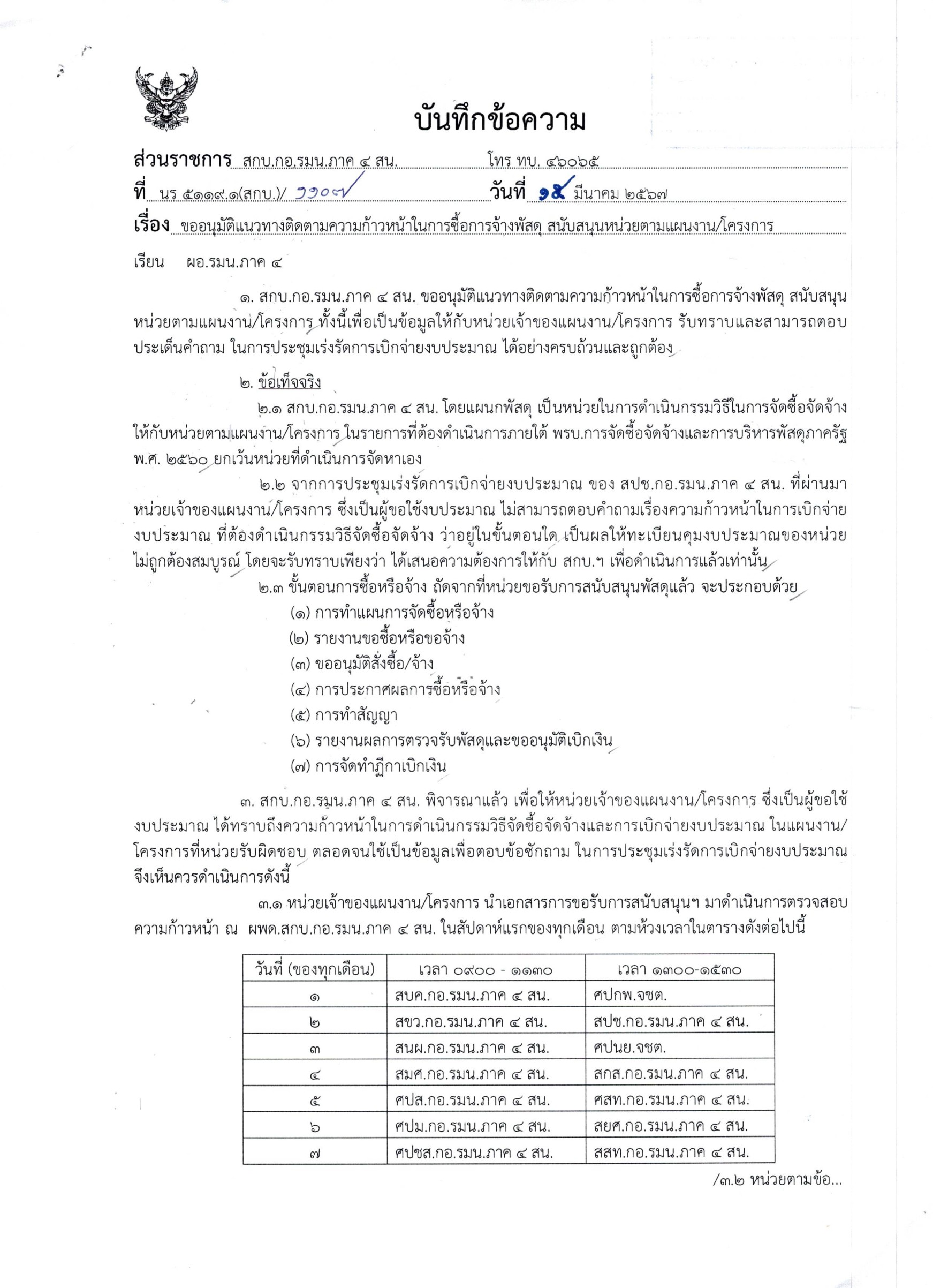 ขออนุมัติแนวทางติดตามความก้าวหน้าในการซื้อการจ้างพัสดุ สนับสนุนหน่วยตามแผนงาน/โครงการ