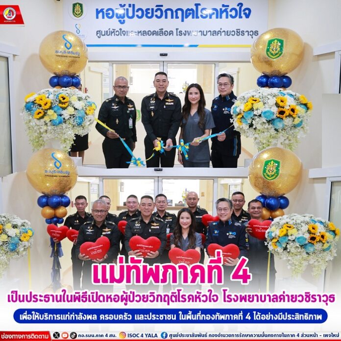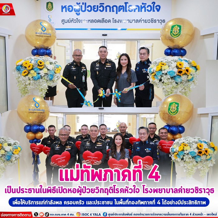วันที่ 2 เมษายน 2567 เวลา 11.00 ที่ หอผู้ป่วยวิกฤตโรคหัวใจ โรงพยาบาลค่ายวชิราวุธ จังหวัดนครศรีธรรมราช พลโท ศานติ ศกุนตนาค แม่ทัพภาคที่ 4 เป็นประธานในพิธีเปิดหอผู้ป่วยวิกฤตโรคหัวใจ ซึ่งหอผู้ป่วยดังกล่าว โรงพยาบาลค่ายวชิราวุธได้ทำการร่วมมือกับโรงพยาบาลธนบุรีเสริมรัฐ ในด้านบุคลากรทางด้านการแพทย์และเครื่องมือทางการแพทย์ เพื่อให้มีความก้าวหน้าและพัฒนาเป็นศูนย์หัวใจและหลอดเลือด ของกองทัพภาคที่4 ซึ่งจะสามารถให้บริการแก่กำลังพลครอบครัวและประชาชนในพื้นที่ได้อย่างมีประสิทธิภาพ ในปัจจุบันโรงพยาบาลค่ายวชิราวุธได้มีการปรับปรุงหอผู้ป่วยวิกฤตโรคหัวใจจากเดิมจำนวน 4 เตียง ขยายเป็นจำนวน 60 เตียง เพื่อรองรับกับปริมาณผู้ป่วยที่เพิ่มมากขึ้น