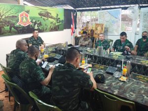 จากนั้น ได้เข้าพบปะ นาย ศักดิ์กรียา บิลแสละ ประธานคณะกรรมการอิสลามประจำจังหวัดสงขลา เพื่อเยี่ยมคารวะ และร่วมหารือ พูดคุยแลกเปลี่ยนข้อคิดเห็นในการประสานความร่วมมือสู่การแก้ไขปัญหาที่ในพื้นที่ โดยเฉพาะอย่างยิ่ง ได้ขอความร่วมมือในการประชาสัมพันธ์การแพร่ระบาดของเชื้อไวรัสโควิด -19 ที่กำลังแพร่ระบาดอยู่ในประเทศเพื่อนบ้าน อยากขอความร่วมมือให้ช่วยกันป้องกันการแพร่ระบาด การ์ดอย่าตก และซึ่งสิ่งที่น่าเป็นกังวลอยู่ในขณะนี้ การลักลอบเข้าเมืองโดยผิดกฎหมายตามแนวชายแดน ซึ่งทางเจ้าหน้าที่ได้ตรวจตรา สอดส่องดูแลตามแนวชายแดนอย่างเข้มงวด