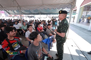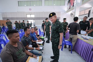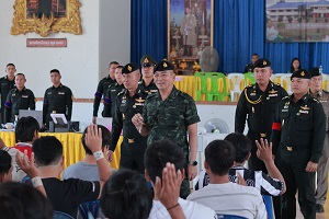 โอกาสนี้แม่ทัพภาคที่4 /ผู้อำนวยการรักษาความมั่นคงภายในภาค4 ได้ พบปะให้กำลังใจผู้ เข้ารับการตรวจเลือกทหารฯ พร้อมได้เชิญชวนประชาสัมพันธ์ สร้างการรับรู้ให้กับชายไทย ที่มาเข้ารับการตรวจเลือกทหารฯ ญาติและผู้ปกครองที่เดินทางมายังหน่วยตรวจเลือกทหารฯ ให้รับรู้ถึงสิทธิประโยชน์ต่างๆเมื่อสมัครเข้ามาเป็นส่วนหนึ่งของกองทัพบกมารับใช้ชาติ พร้อมได้ให้ความมั่นใจกับผู้ปกครองว่าเมื่อลูกหลานของท่านก้าวเข้าสู่รั้วทหาร ทางกองทัพบกจะดูแลลูกหลานท่านเป็นอย่างดี ขอให้ไว้วางใจว่าลูกหลานของท่านจะได้รับการดูแลพร้อมฝึกระเบียบวินัย และพัฒนาคุณภาพชีวิตให้ดีขึ้นในทุกด้าน ควบคู่กับโอกาสในการต่อยอดเพื่อสอบเข้ารับราชการทหารในอนาคตอีกด้วย