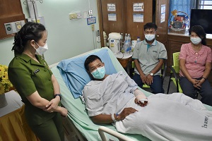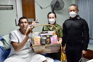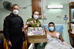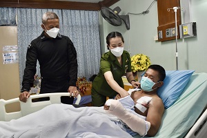 เมื่อวันที่ 6 เมษายน 2567 เวลา 15.00 น. ที่โรงพยาบาลปัตตานี อำเภอเมือง จังหวัดปัตตานี พันเอก ภาคภูมิ จันทรักษ์ ผู้บังคับหน่วยเฉพาะกิจกรมทหารพรานที่ 44 พร้อมด้วย คุณจุฑาพร จันทรักษ์ ประธานสมาคมแม่บ้านทหารบก สาขา กรมทหารพราน 44 เยี่ยมให้กำลังใจกำลังพลชุดปฏิบัติการพิเศษ (ชป.พิเศษ) ที่ได้รับบาดเจ็บจากเหตุกลุ่มผู้ก่อเหตุรุนแรงลอบวางระเบิด ขณะปฏิบัติหน้าที่ในการรักษาความปลอดภัยเส้นทาง ให้กับคณะตรวจเลือกทหารฯ ในพื้นที่อำเภอทุ่งยางแดง จังหวัดปัตตานี เมื่อวันที่ 5 เมษายน 2567 โดยในเหตุการณ์ดังกล่าว ทำให้มีกำลังพลของหน่วยได้รับบาดเจ็บ จำนวน 2 นาย คือ สิบเอก ธีรพงค์ เพชรโชติ และ อาสาสมัครทหารพราน ปิยะพงษ์ ทวีทรัพย์ใหม่ ซึ่งเบื้องต้นได้เข้ารับการรักษาที่โรงพยาบาลปัตตานี และส่งรักษาตัวต่อ โรงพยาบาลสงขลานครินทร์ อำหาดใหญ่ จังหวัดสงขลา ปัจจุบันอาการปลอดภัยแล้ว