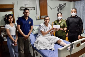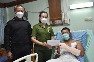 ทั้งนี้ ผู้บังคับหน่วยเฉพาะกิจกรมทหารพรานที่ 44 และ ประธานสมาคมแม่บ้านทหารบก สาขา กรมทหารพราน 44 ได้มอบสิ่งของเครื่องบริโภค (กระเช้าผลิตภัณฑ์บำรุงร่างกาย) รวมทั้งเงินช่วยเหลือเยียวยาเบื้องต้นให้กับกำลังพลผู้ที่ได้รับผลกระทบจากสถานการณ์ดังกล่าว เพื่อเป็นการสร้างขวัญ และกำลังใจในการพักรักษาตัว
