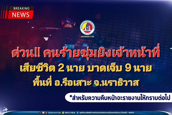 - อาสาสมัครทหารพราน สมาน ลีอาเดี๋ยว ได้รับบาดเจ็บเล็กน้อย เข้ารักษาตัวโรงพยาบาลรือเสาะ