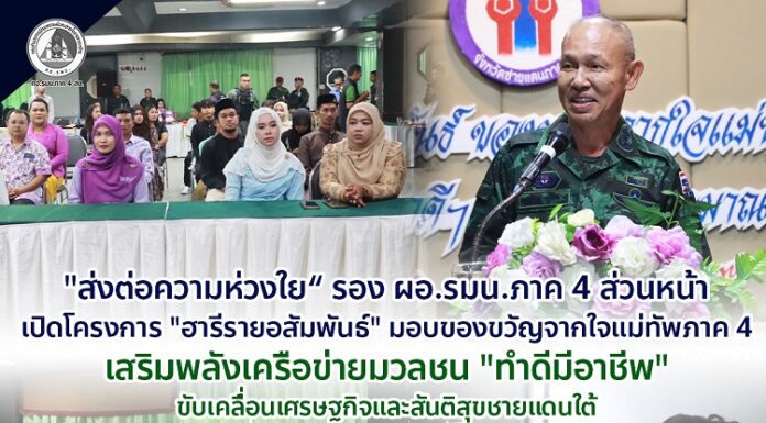 “ส่งต่อความห่วงใย“ รอง ผอ.รมน.ภาค 4 ส่วนหน้า เปิดโครงการ “ฮารีรายอสัมพันธ์” มอบของขวัญจากใจแม่ทัพภาคที่ 4 เสริมพลังเครือข่ายมวลชน “ทำดีมีอาชีพ” ขับเคลื่อนเศรษฐกิจและสันติสุขชายแดนใต้
