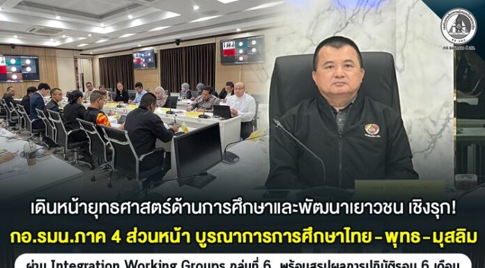 เดินหน้ายุทธศาสตร์ด้านการศึกษาและพัฒนาเยาวชน เชิงรุก! กอ.รมน.ภาค 4 ส่วนหน้า บูรณาการการศึกษาไทย-พุทธ-มุสลิม ผ่าน Integration Working Groups กลุ่มที่ 6 พร้อมสรุปผลการปฏิบัติรอบ 6 เดือน