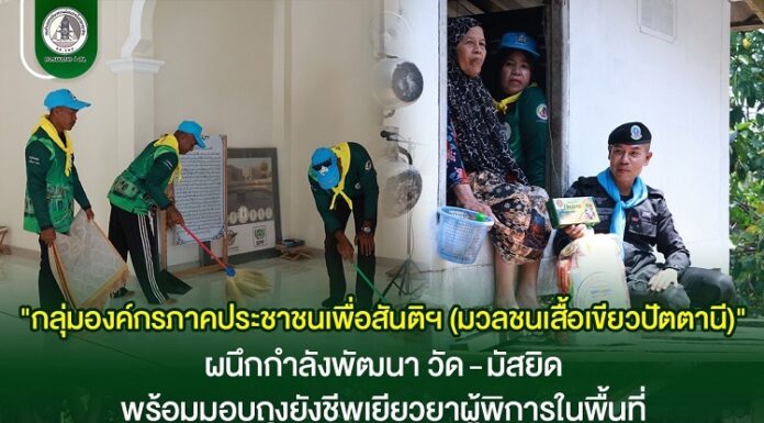 “กลุ่มองค์กรภาคประชาชนเพื่อสันติฯ (มวลชนเสื้อเขียวปัตตานี)” ผนึกกำลังพัฒนาวัด-มัสยิด พร้อมมอบถุงยังชีพเยียวยาผู้พิการในพื้นที่