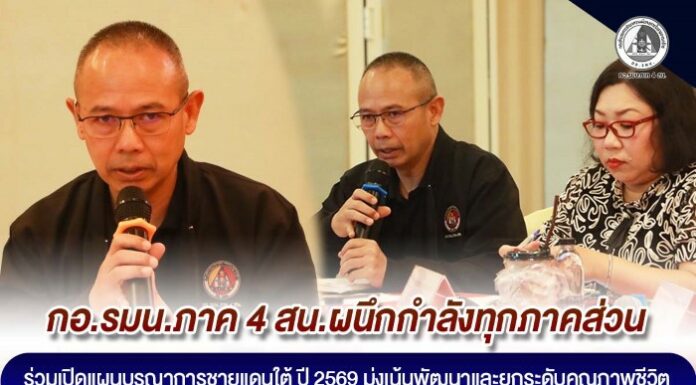 กอ.รมน.ภาค 4 สน. ผนึกกำลังทุกภาคส่วน ร่วมเปิดแผนบูรณาการชายแดนใต้ ปี 2569 มุ่งเน้นพัฒนาและยกระดับคุณภาพชีวิต