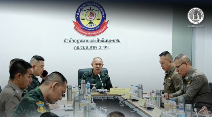 ทั้งนี้ กองอำนวยการรักษาความมั่นคงภายในภาค 4 ส่วนหน้า ยังคงยึดมั่นในหลักกฎหมายที่จะดำเนินตามพยานหลักฐาน ปฏิบัติงานภายใต้ กรอบสิทธิมนุษยชนอย่างเคร่งครัด ด้วยความระมัดระวัง รอบคอบ และพร้อมที่จะให้ความเป็นธรรมกับทุกฝ่าย โดยสำนักกฎหมายและสิทธิมนุษยชน กองอำนวยการรักษาความมั่นคงภายในภาค 4 ส่วนหน้า ซึ่งมีหน้าที่หลักคือการดำเนินการในการให้ข้อเสนอแนะแก่ผู้บังคับบัญชาภายในกองอำนวยการรักษาความมั่นคงภายในภาคสี่ส่วนหน้าเกี่ยวกับงานด้านกฎหมายต่างๆที่เกิดขึ้นในพื้นที่จังหวัดชายแดนภาคใต้ พร้อมรับเรื่องราวร้องทุกข์ร้องเรียน...