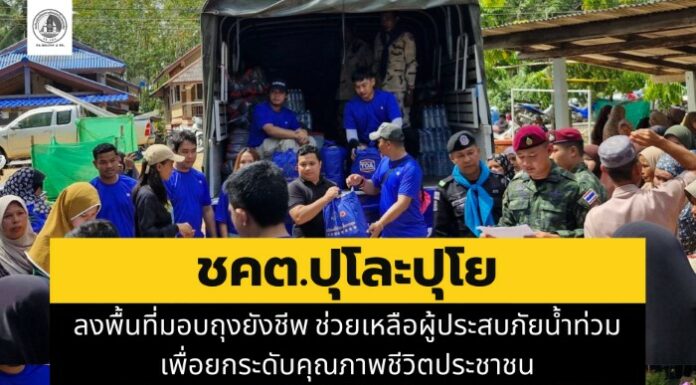 ชคต.ปุโละปุโย ลงพื้นที่มอบถุงยังชีพ ช่วยเหลือผู้ประสบภัยน้ำท่วม เพื่อยกระดับคุณภาพชีวิตประชาชน