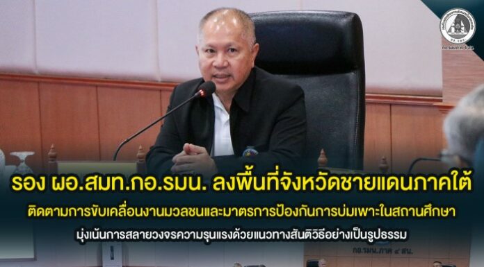 รองผู้อำนวยการสำนักกิจการมวลชนและสารนิเทศ กองอำนวยการรักษาความมั่นคงภายในราชอาณาจักร ลงพื้นที่จังหวัดปัตตานี เพื่อติดตามการขับเคลื่อนงานมวลชนและมาตรการป้องกันการบ่มเพาะในสถานศึกษา มุ่งเน้นการสลายวงจรความรุนแรงด้วยแนวทางสันติวิธีอย่างเป็นรูปธรรม