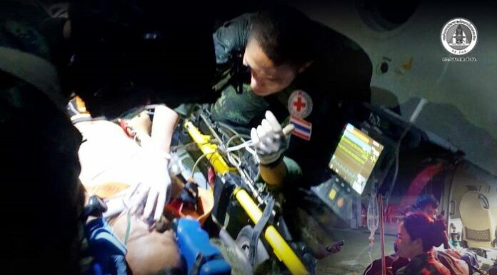 หลังเกิดเหตุ หน่วยเฉพาะกิจกรมทหารราบที่ 3 พร้อมทีมแพทย์และหน่วยเสนารักษ์ เดินเท้าเข้าพื้นที่ทันทีเพื่อปฐมพยาบาลเบื้องต้น แต่ผลการประเมินอาการพบว่าผู้บาดเจ็บอาการสาหัสเกินกว่าจะเคลื่อนย้ายด้วยเปลสนามผ่านป่าเขาได้ จึงมีการประสานขอรับการสนับสนุนทางอากาศยานทันที