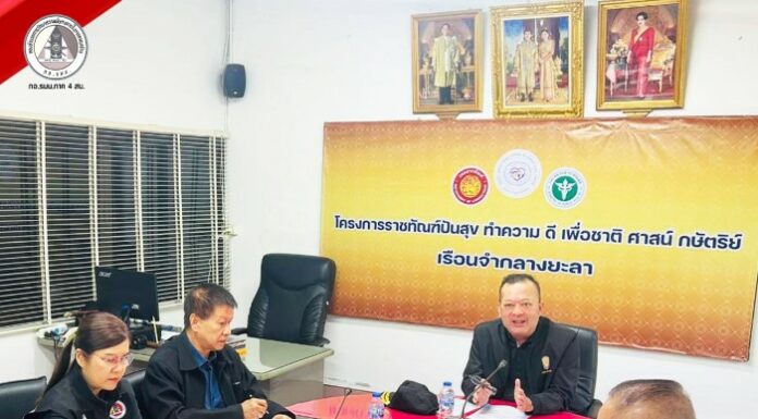 โดยการประชุมในครั้งนี้ ได้รับเกียรติจาก นายธวัช เอียดทิม ผู้บัญชาการเรือนจำกลางยะลา เป็นประธานการประชุม ซึ่งการหารือมุ่งเน้นไปที่การบูรณาการการทำงานร่วมกันอย่างใกล้ชิด ระหว่างหน่วยงานความมั่นคงและหน่วยงานราชทัณฑ์ เพื่อขับเคลื่อนนโยบายด้านสิทธิมนุษยชน การดูแลคุณภาพชีวิต การอำนวยความสะดวกทางกฎหมาย ตลอดจนการนำแนวทางสันติวิธีมาปรับใช้ในการดูแลผู้ต้องขัง