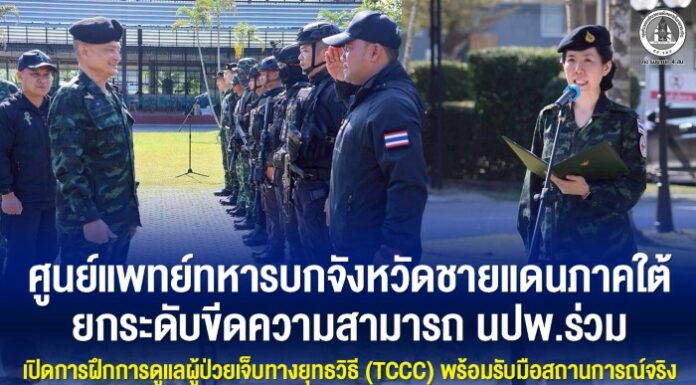 ศูนย์แพทย์ทหารบกจังหวัดชายแดนภาคใต้ ยกระดับขีดความสามารถ นปพ.ร่วม เปิดการฝึกการดูแลผู้ป่วยเจ็บทางยุทธวิธี (TCCC) พร้อมรับมือสถานการณ์จริง