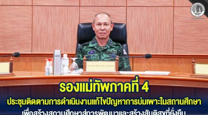 รองแม่ทัพภาคที่ 4 ประชุมติดตามการดำเนินงานแก้ไขปัญหาการบ่มเพาะในสถานศึกษา เพื่อสร้างสถานศึกษาสู่การพัฒนาและสร้างสันติสุขที่ยั่งยืน