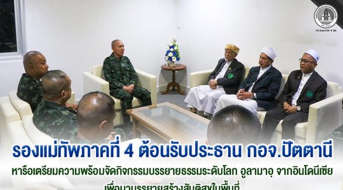 รองแม่ทัพภาคที่ 4 ต้อนรับประธาน กอจ.ปัตตานี หารือเตรียมความพร้อมจัดกิจกรรมบรรยายธรรมระดับโลก อูลามาอฺ จากอินโดนีเซีย เพื่อมาบรรยายสร้างสันติสุขในพื้นที่
