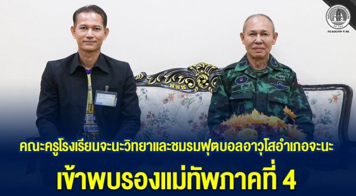 คณะครูโรงเรียนจะนะวิทยาและชมรมฟุตบอลอาวุโสอำเภอจะนะ เข้าพบ รองแม่ทัพภาคที่ 4 เพื่อแสดงความขอบคุณที่ได้สนับสนุนในกิจกรรมการแข่งขันฟุตบอลเชื่อมสัมพันธ์