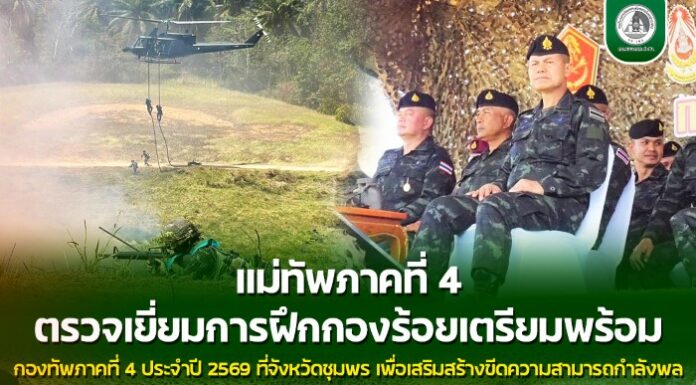 แม่ทัพภาคที่ 4 ตรวจเยี่ยมการฝึกกองร้อยเตรียมพร้อม กองทัพภาคที่ 4 ประจำปี 2569 ที่จังหวัดชุมพร เพื่อเสริมสร้างขีดความสามารถกำลังพล