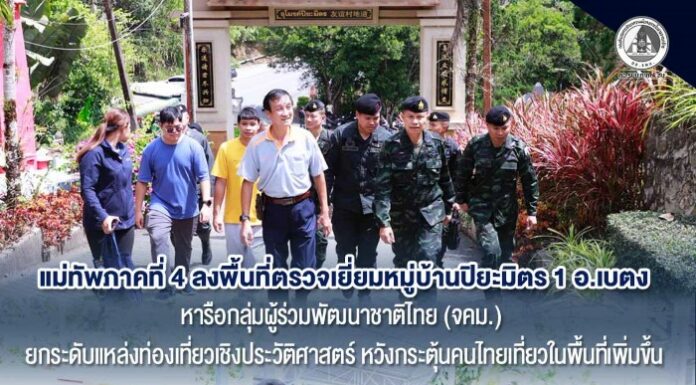 แม่ทัพภาคที่ 4 ลงพื้นที่ตรวจเยี่ยมหมู่บ้านปิยะมิตร 1 อ.เบตง หารือกลุ่มผู้ร่วมพัฒนาชาติไทย (จคม.) ยกระดับแหล่งท่องเที่ยวเชิงประวัติศาสตร์ หวังกระตุ้นคนไทยเที่ยวในพื้นที่เพิ่มขึ้น