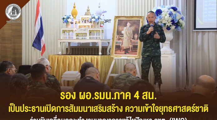 รอง ผอ.รมน.ภาค 4 สน. เป็นประธานเปิดการสัมมนาเสริมสร้าง ความเข้าใจยุทธศาสตร์ชาติ ร่วมขับเคลื่อนคณะทำงานบูรณาการแก้ไขปัญหา จชต. (IWG)