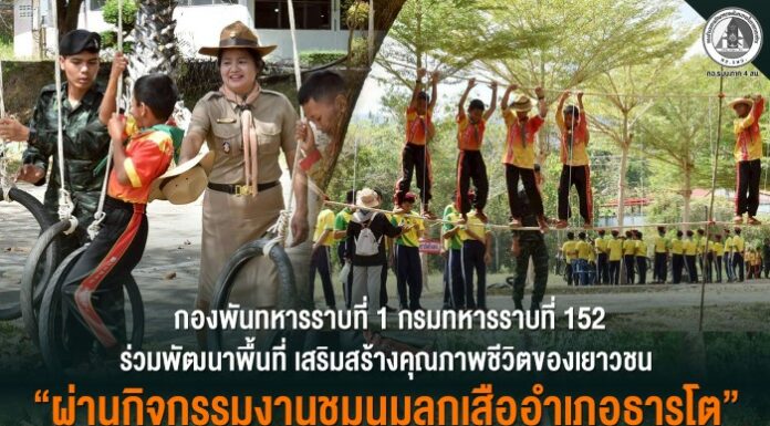 กองพันทหารราบที่ 1 กรมทหารราบที่ 152 ร่วมพัฒนาพื้นที่ เสริมสร้างคุณภาพชีวิตของเยาวชน ผ่านกิจกรรมงานชุมนุมลูกเสืออำเภอธารโต