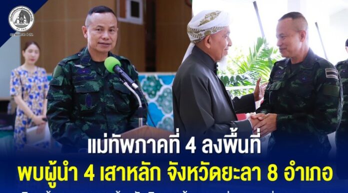 แม่ทัพภาคที่ 4 พบผู้นำ 4 เสาหลัก จ.ยะลา 8 อำเภอ เดินหน้าบูรณาการสร้างสันติสุข พร้อมดูแลประชาชนช่วงรอมฎอน