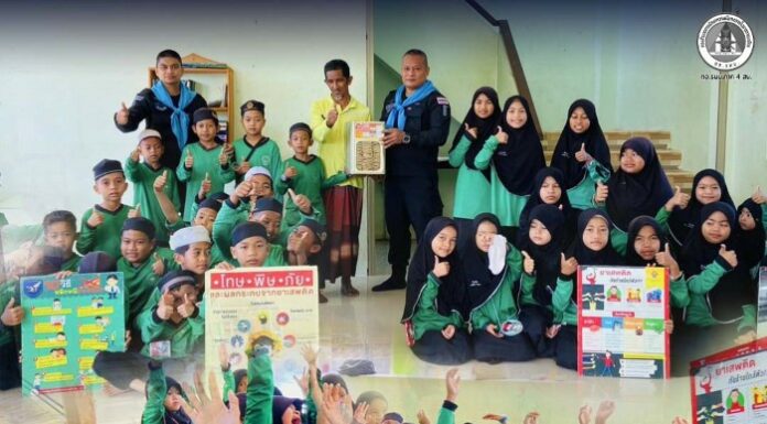 วันที่ 8 กุมภาพันธ์ 2569 เวลา 09.00 น. หน่วยเฉพาะกิจกรมทหารพรานที่ 41 โดยชุดปฏิบัติการกิจการพลเรือน กองร้อยทหารพรานที่ 4115 ได้ลงพื้นที่ ศูนย์การศึกษาอิสลามประจำมัสยิด (ตาดีกา) อัลอิสลามียะห์ บ้านโต๊ะพราน หมู่ที่ 1 ตำบลท่าธง อำเภอรามัน จังหวัดยะลา พบปะเยี่ยมเยียนครูสอนศาสนาและนักเรียน พร้อมบรรยายให้ความรู้เกี่ยวกับพิษภัยและโทษของยาเสพติดแก่เยาวชนในสถาบันปอเนาะ เพื่อเสริมสร้างความรู้ ความเข้าใจ และสร้างภูมิคุ้มกันทางจิตใจให้แก่เยาวชน ให้สามารถรู้เท่าทันและหลีกเลี่ยงปัญหายาเสพติด ซึ่งถือเป็นรากฐานสำคัญในการป้องกันและแก้ไขปัญหายาเสพติดในสถานศึกษาและชุมชน