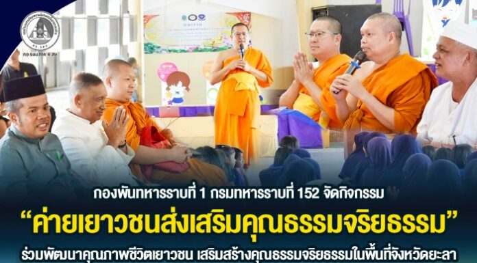 กองพันทหารราบที่ 1 กรมทหารราบที่ 152 จัดกิจกรรม “ค่ายเยาวชนส่งเสริมคุณธรรมจริยธรรม” ร่วมพัฒนาคุณภาพชีวิตเยาวชน เสริมสร้างคุณธรรมจริยธรรมในพื้นที่จังหวัดยะลา