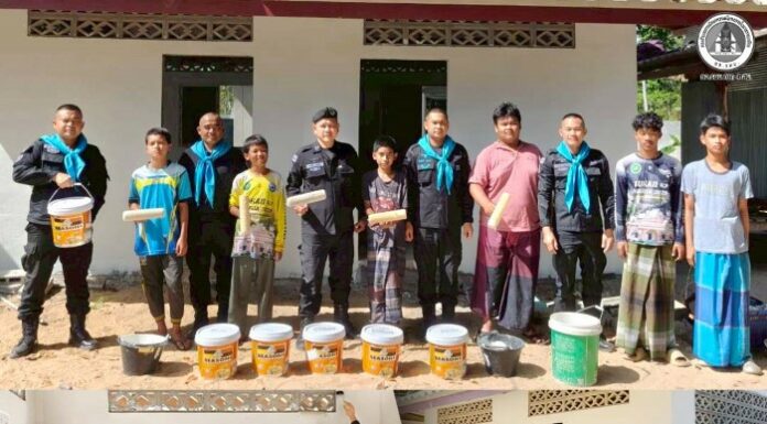 หน่วยเฉพาะกิจกรมทหารพรานที่ 44 ร่วมทาสีอาคารเรียน ปรับโฉมอาคารให้ดูน่าอยู่และเพื่อรอยยิ้มของน้องๆ นักเรียนในสถานศึกษาปอเนาะ