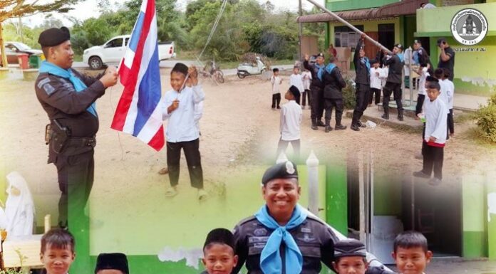 หน่วยเฉพาะกิจกรมทหารพรานที่ 48 เปลียนธงชาติไทยผืนใหม่ให้กับโรงเรียน ทดแทนผืนเก่าที่ชำรุด