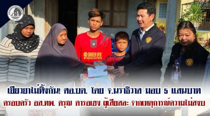 เยียวยาไม่ทิ้งกัน! ศอ.บต. โดย จ.นราธิวาส มอบ 5 แสนบาท ครอบครัว อส.ทพ. ดรุณ ดารอเฮง ผู้เสียสละ จากเหตุการณ์ความไม่สงบ