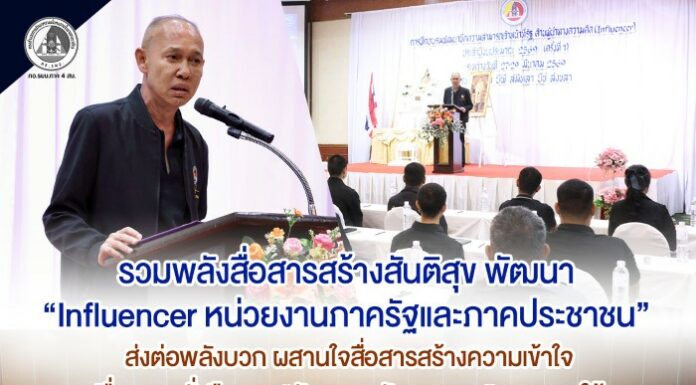 รวมพลังสื่อสารสร้างสันติสุข พัฒนา “Influencer หน่วยงานภาครัฐและภาคประชาชน” ส่งต่อพลังบวก ผสานใจสื่อสารสร้างความเข้าใจ เพื่อความยั่งยืนของ “สังคมพหุวัฒนธรรม” ชายแดนใต้